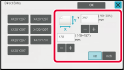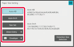 Tap the [Size] tab, and tap the key that meets the size of the loaded paper.