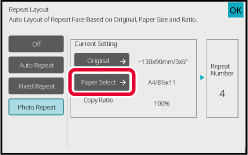 When you tap the original size key, the original direction is indicated in the "How To Set". Place the original to meet the displayed orientation.Tap the [Paper Select] key and select a paper size.