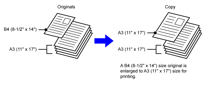 B4 (8-1/2" x 14") size original is enlarged to A3 (11" x 17") size