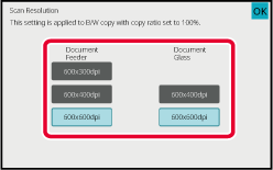 The resolution can be set to both the document feeder and document glass. After the settings are completed, tap [OK] and [Back] keys in sequence.