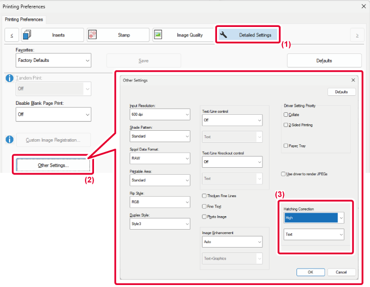 The hatching correction function in the printer driver can