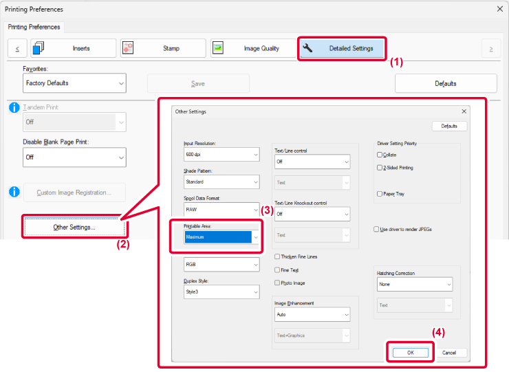 appears.By maximizing the print area, you can print