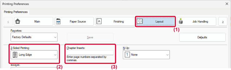 Select [Tab Paper] in [Inserts Option] on the [Inserts] tab
