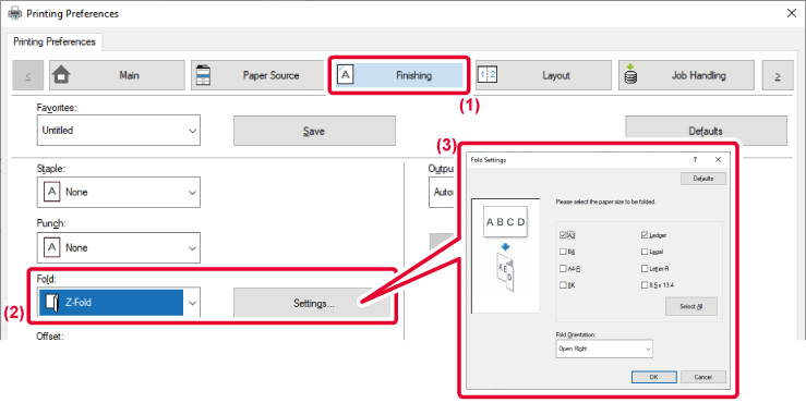 want to print on the tabs. Specify the detailed settings such as