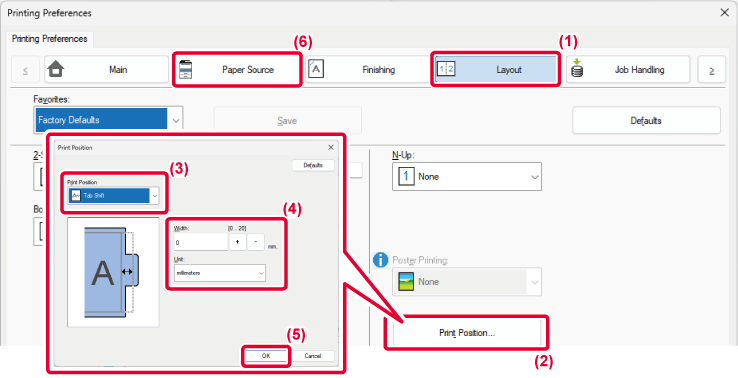and set the test shifting distance in [Print Position] on the [Layout]