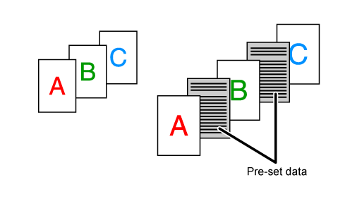 For example, if A4 (8-1/2" × 11") and A3 (11" × 17") size print images are mixed, only the A3 (11" × 17") size paper is folded and changed to A4 (8-1/2" × 11") size paper. Copies are output sheet by sheet. |