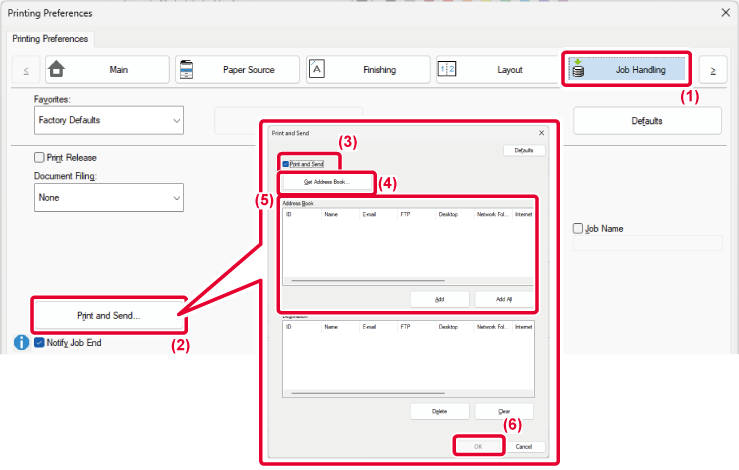 - Select the [Print and Send] checkbox so that