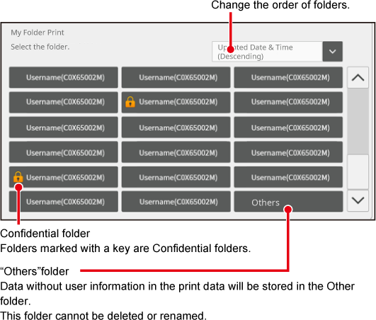(Administrator)"→[System Settings]→ [Printer Settings]→[My Folder