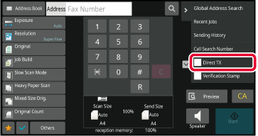 AUTOMATIC DOCUMENT FEEDERSpecify the destination fax number, and tap [Direct TX]