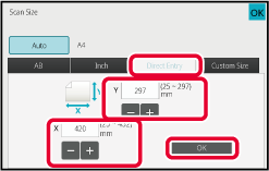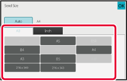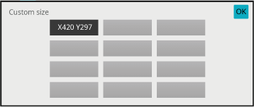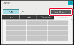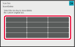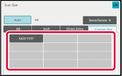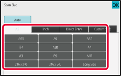 Tap the [Scan Size] key and tap the [Custom Size] tab.