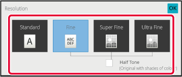 When your original is a photograph or has gradations of colour (such as a colour original), and you wish to produce a clearer image than [Fine], [Super Fine], or [Ultra Fine] used alone, set the [Half Tone] checkbox to