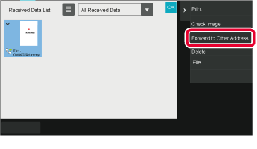 Tap the key of the received data you wish to forward, and tap [Forward to Other Address].