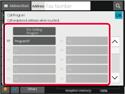 According to the function stored in the program, place the original in the document feeder tray of the automatic document feeder, or on the document glass.Tap [Call Program] on the action panel.