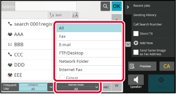 on the base screen in image send mode such as fax, e-mail, or Internet