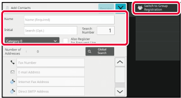 Enter the basic information, and tap [Switch to Group Registration] on the action panel.