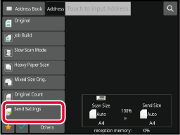 SELECTING NETWORK SCANNER MODETap the [Send Settings] key.