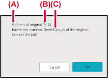 A beep will sound to indicate that scanning has ended.When scanning ends, check the number of original sheets and the number of sheets to be sent and tap the [OK] key to start transmission.