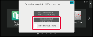 When a screen for selecting the action appears, tap [Scan to External Memory Device].