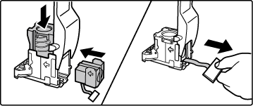Inserte un cartucho de grapas nuevo en la caja de grapas, tal y como se muestra.