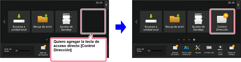 Puede añadir una tecla de acceso directo desde el panel táctil