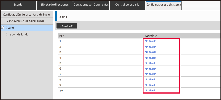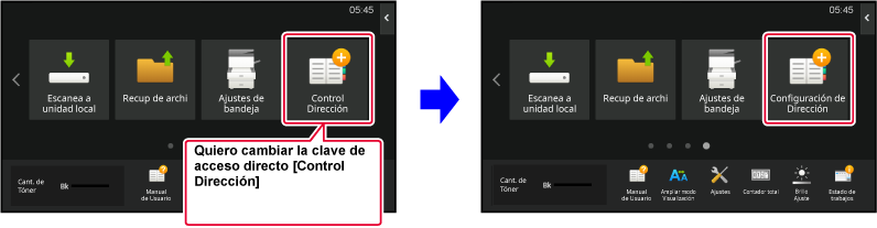 Los ajustes se guardarán en la máquina y se aplicarán.Para cambiar la imagen de una tecla de acceso