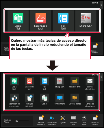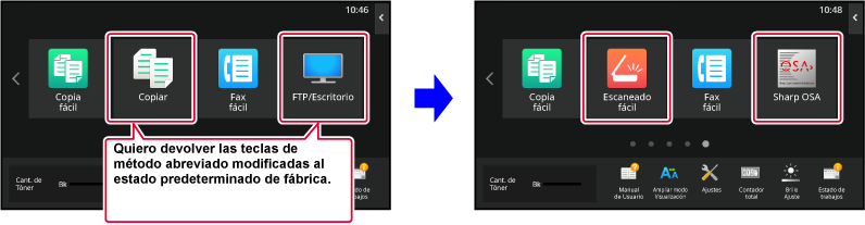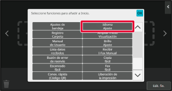 Los ajustes se guardarán en la máquina y se aplicarán.Puede añadir teclas de acceso directo a