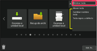 Toque la tecla de acceso directo que desee eliminar y toque [Eliminar tecla].