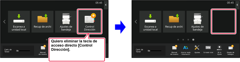 Las teclas de acceso directo se mueven mediante el panel táctil.
