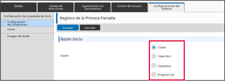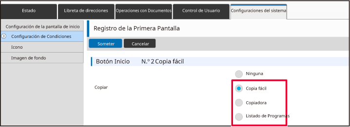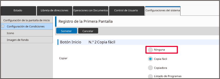 Si hace clic en el botón [Someter], se cierra la pantalla [Registro de la Primera Pantalla].Cuando haya terminado de configurar los ajustes, haga clic en el botón [Someter].