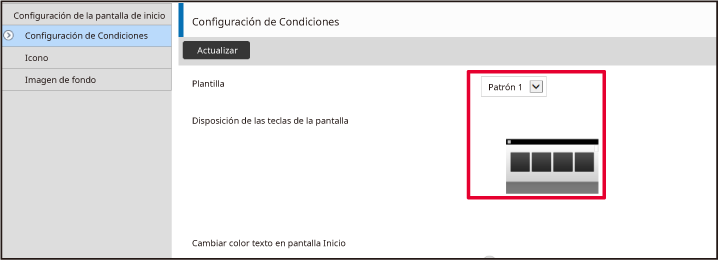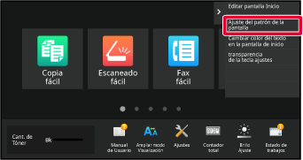 Abra el panel de acción en la pantalla de inicio , y pulse [Ajuste del patrón de la pantalla].