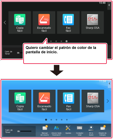 de color. Puede cambiar el patrón de color desde el panel táctil.