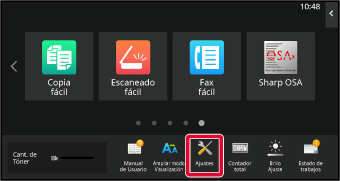 Toque la tecla [Ajustes] en la pantalla de inicio.