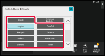 Estos ajustes pueden requerir que introduzca su contraseña de usuario. Si no realizó la autenticación de usuario, deberá introducir la contraseña de administrador.Seleccione en la lista el idioma al que desee cambiar.