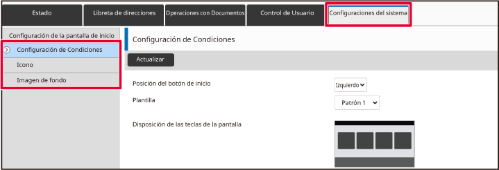 Algunos ajustes pueden requerir que introduzca su contraseña de usuario tras hacer clic en [Configuración de la pantalla de inicio]. Si no realizó la autenticación de usuario, deberá introducir la contraseña de administrador.