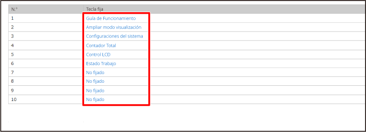 Puede hacer clic en [No fijado] para añadir una tecla fija nueva.