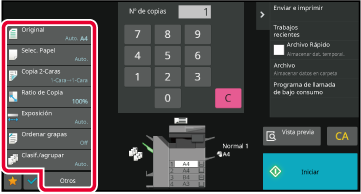 Y EL TAMAÑO DEL ORIGINALSELECCIÓN DE LA BANDEJA DE PAPEL PARA LA REALIZACIÓN DE COPIASCOPIA AUTOMÁTICA A DOS CARASAMPLIACIÓN/REDUCCIÓN DE LA LONGITUD