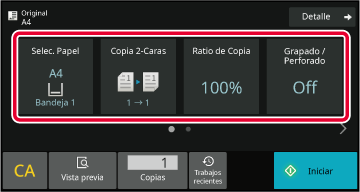 SELECCIÓN DE LA BANDEJA DE PAPEL PARA LA REALIZACIÓN DE COPIASCOPIA AUTOMÁTICA A DOS CARASSELECCIÓN AUTOMÁTICA DE PORCENTAJESALIDASELECCIÓN DE LA ORIENTACIÓN