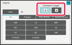 Pulse la tecla [Original] para establecer la orientación del original.