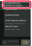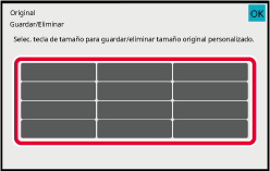 Toque [Guardar/Eliminar tamaño del original] en el panel de acciones.