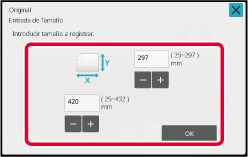 Una vez haya seleccionado la tecla del tamaño de original, toque la tecla [OK].