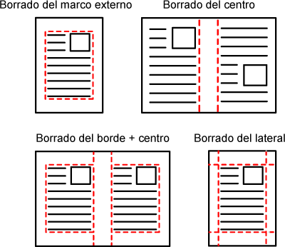 Modos de borrado (Borrado de marco externo, Borrado central, Borrado