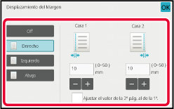 Pulse la pantalla de valores numéricos que indica el área de desplazamiento del margen para el anverso o el reverso, e introduzca el área mediante las teclas numéricas.