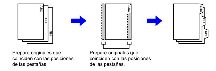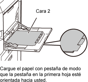 | Originales | Colocación de los originales | Carga del papel con pestañas |