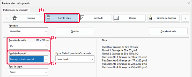 [Tipo de papel] se ajusta automáticamente a [Sobre].