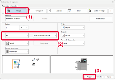 y "Tamaño de salida" se ajusta a [Igual que el tamaño original], "Tipo de papel" se
