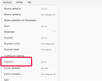 Seleccione [Imprimir] en el menú [Archivo] de Notepad.