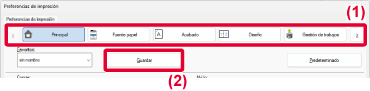 Las configuraciones se pueden guardar desde cualquier ficha
