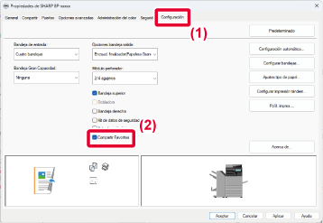 de la ventana de propiedades del controlador de la impresora. Las