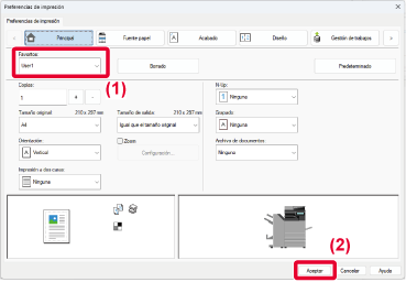 Para obtener más información sobre la configuración, consulte la Ayuda del controlador de la impresora.Cuando utilice esta máquina como impresora