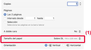 - Seleccione el tamaño de sobre en el menú "Tamaño de papel".